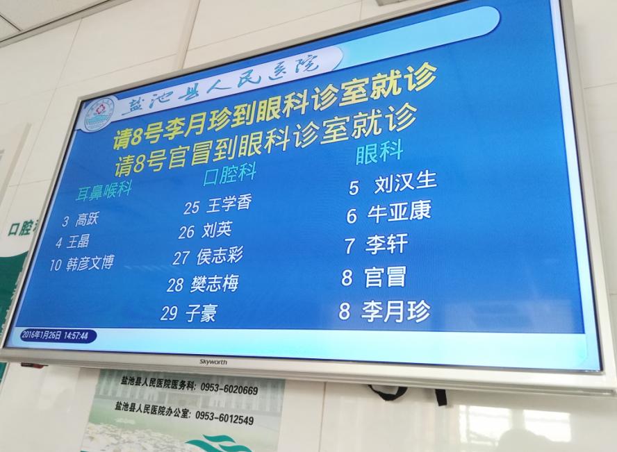 縣醫(yī)院為了解決長(zhǎng)期以來?yè)Q亂的就醫(yī)秩序,采用我公司智能排隊(duì)分診系統(tǒng),該系統(tǒng)非常先進(jìn),患者掛完號(hào),系統(tǒng)會(huì)自動(dòng)讀取患者信息,根據(jù)患者所掛號(hào)的類別自動(dòng)分配到相關(guān)科室,直接呼叫患者序號(hào)以及姓名,免去了抽號(hào)等過程,得到醫(yī)院領(lǐng)導(dǎo)的一致好評(píng)!