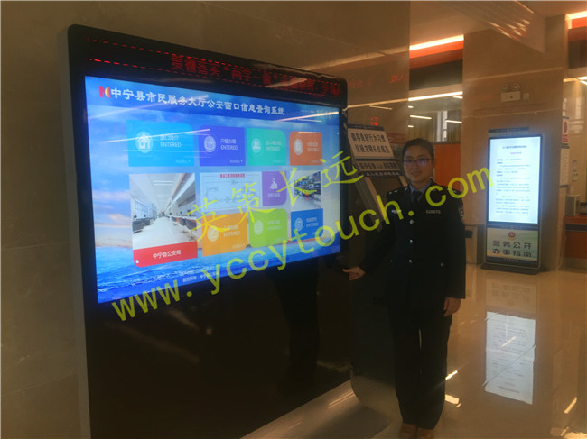 此次下屬公安部門與英策公司合作定制的70寸觸摸查詢系統(tǒng),更好的展示公安系統(tǒng)服務的形象,辦事更透明,群眾更放心.