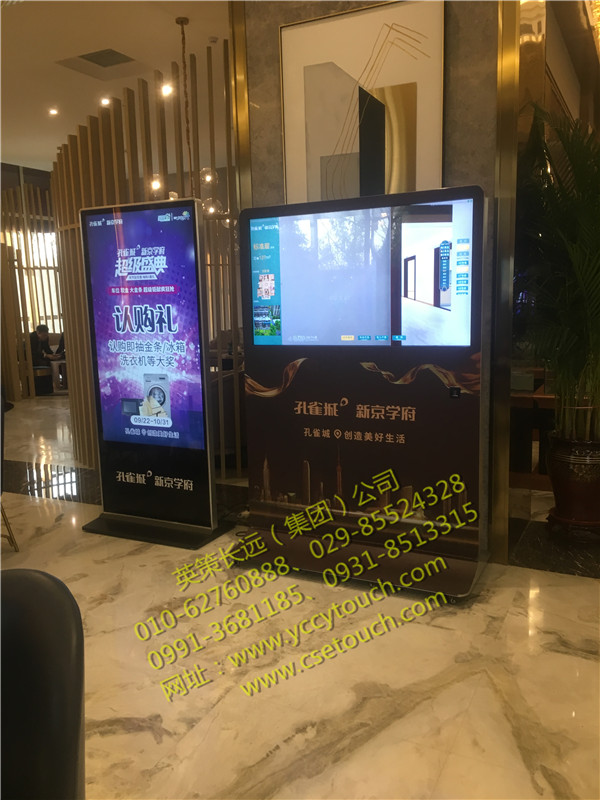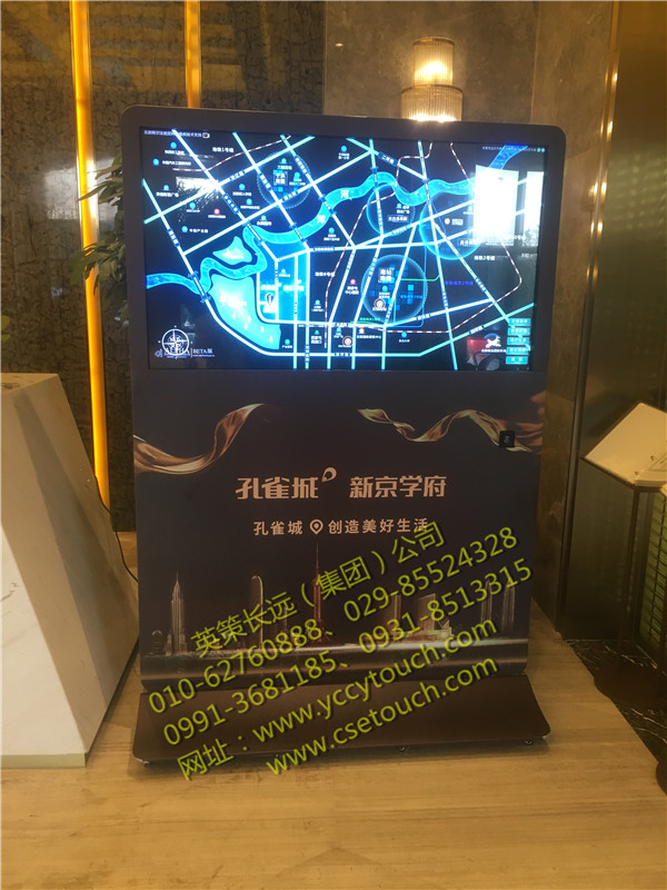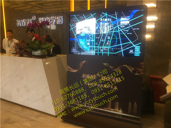 圖為我英策公司為沈陽(yáng)孔雀城·新京學(xué)府安裝了1000-55寸落地式大尺寸觸摸查詢機(jī)。