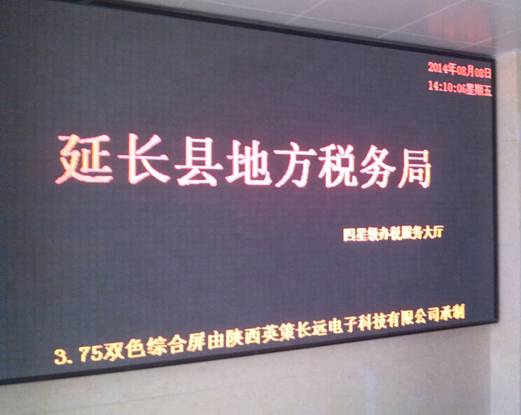 延長縣地方稅務(wù)局直屬稅務(wù)分局,位于:陜西省延安市延長縣七里村鎮(zhèn)城東,本項(xiàng)目為綜合項(xiàng)目,其中LED屏項(xiàng)目集中展示了辦稅功能及辦稅公開事項(xiàng),為便民公示和辦稅公開打下了堅(jiān)實(shí)的基礎(chǔ),不僅提高了辦事效率,更優(yōu)化了服務(wù)品質(zhì)。