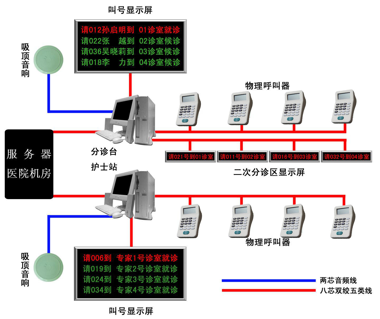 當(dāng)今各行各業(yè)的信息化、智能化建設(shè)越來越普及,整個(gè)社會(huì)對(duì)各個(gè)行業(yè)的辦事效率的要求越來越高,尤其是服務(wù)性行業(yè),既要滿足被服務(wù)人的服務(wù)需求,又要提高服務(wù)質(zhì)量,提高服務(wù)效率,例如醫(yī)院門診等,現(xiàn)在的病人不僅僅要求醫(yī)院滿足業(yè)務(wù)上的需要,還要求醫(yī)院盡量提高就醫(yī)的環(huán)境、服務(wù)的質(zhì)量及減少病人的等待時(shí)間,而醫(yī)院本身由于競爭的需要,也要求提高本身的辦事效率,提高本身的服務(wù)形象,而這些辦事窗口及門診的排隊(duì)現(xiàn)象在所難免,在過去,一旦到就診高峰期,病人為了早一點(diǎn)看上病,病人或病人的家屬不停在就診室和病人之間走來走去,這樣把本來就紛亂的醫(yī)院環(huán)境變得更加紛亂,不僅影響了醫(yī)生的工作,給醫(yī)院的導(dǎo)診護(hù)士增加了工作量,也給病人造成了不必要的麻煩。