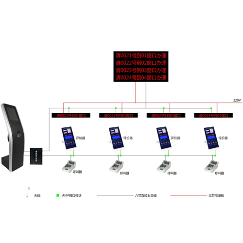 取號機*1臺、雙口有線軟件接口*1個;呼叫器*10個;評價器*10個(選配)、LED窗口顯示屏*10塊、LED綜合顯示屏(選配).