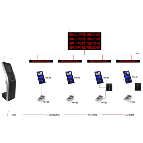 取號機*1臺、無線收發(fā)器*22個;呼叫器*10個;評價器*10個(選配)、LED窗口顯示屏*10塊、LED綜合顯示屏(選配).
